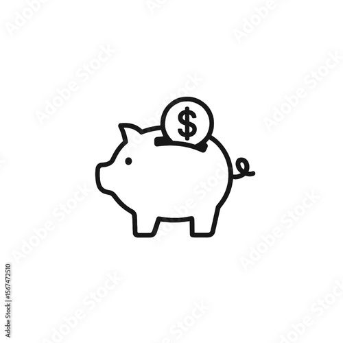 © いっちょー, Obraz premium 豚の貯金箱の線画アイコン、ドル、イラスト、素材、資料作り、背景なし