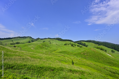 Fototapeta premium 砥峰高原の新緑のグリーンカーペット
