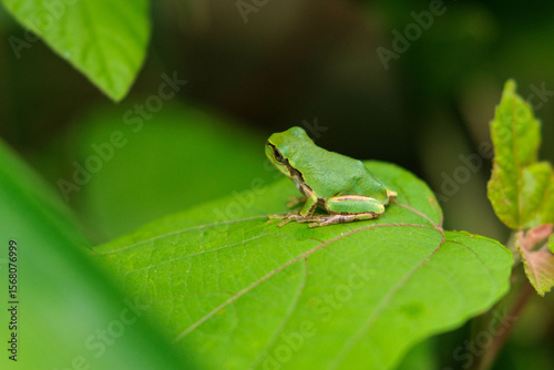 © Gottchin Nao, Obraz premium 葉っぱの上で休むアマガエル
