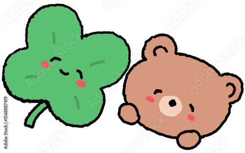 © titi.drawing, Obraz premium 웃고 있는 클로버와 곰돌이 캐릭터 일러스트