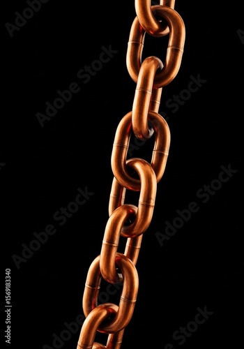 © ThanhLuan, Obraz premium 검은 배경에 빛나는 구리 사슬 매끄럽게 이어져 강인함 표현