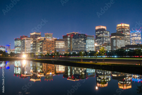 Obraz premium 東京都 夜の丸の内、高層ビル群