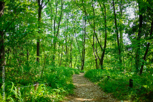 © Ray Park Stock Photo, Obraz premium 緑の森 一本道