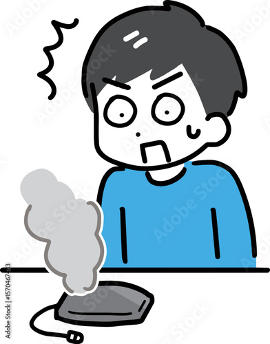 Obraz premium モバイルバッテリーの煙に驚く男性