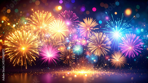 © fii, Naklejka premium 夜空を彩る華やかな花火の背景素材