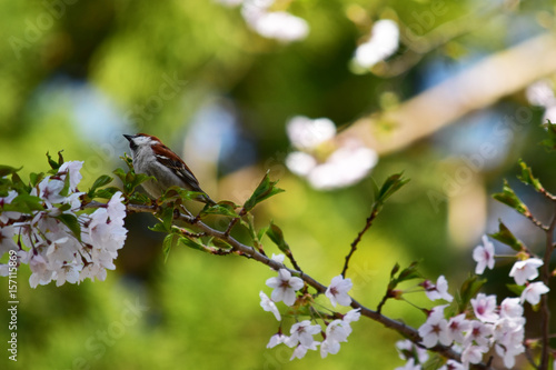 © mayudama, Fototapeta premium 前を見つめる桜の木のニュウナイスズメ