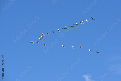 © mayudama, Naklejka premium 青空に北帰行の白鳥たち