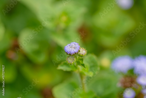 Obraz premium アゲラタムの蕾と花のマクロ撮影