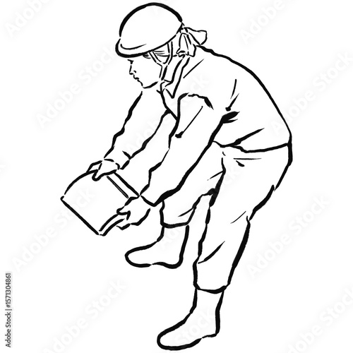 Fototapeta premium 浮世絵風の職人線画_04