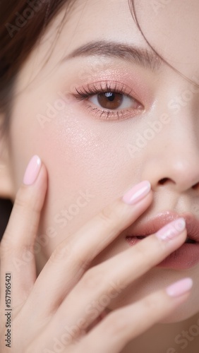 © Yka, Obraz premium ピンクのネイルとアイメイクのクローズアップ