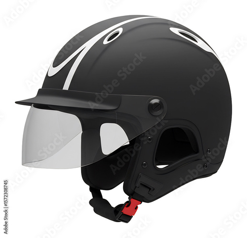© Heini, Naklejka premium スタイリッシュな黒マットヘルメット、白ラインが輝く。