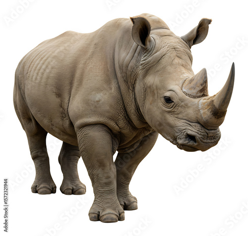 © Heini, Fototapeta premium 力強い白犀、静かに佇む姿、自然光で輝く肌