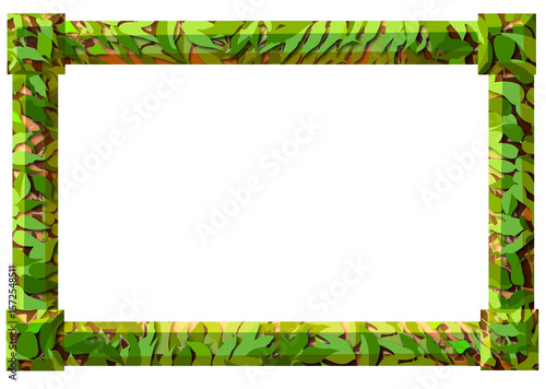 Obraz premium 緑の葉のある木枠のフレーム・夏の森の葉