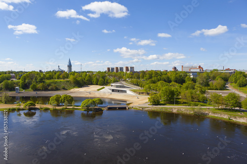 © aphonua, Obraz premium Река Нарова и город Нарва. Эстония.