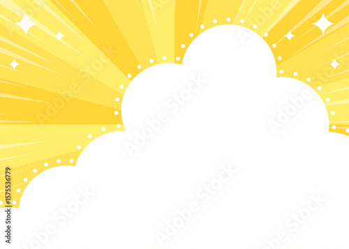 Fototapeta premium 雲のデザインの背景フレーム、サンバースト、集中線と光のデコレーション