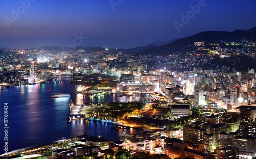 © s_fukumura, Obraz premium 鍋冠山の展望台から眺める長崎の夜景