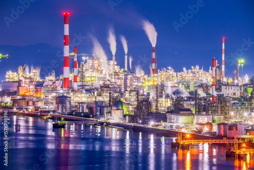 © butterfly0124, Fototapeta premium 広島県 大竹市 工場夜景 亀居公園