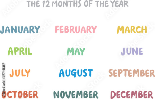 © MARI, Obraz premium 手書き英語月名セット(12ヶ月)もっちりタイプ