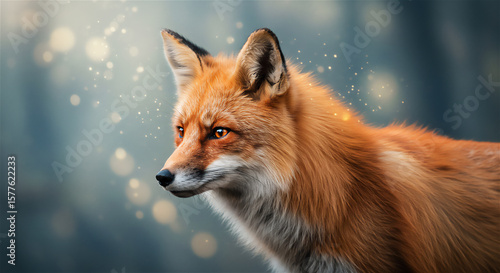 Obraz premium 魔法の光に包まれたキツネ 幻想的で神秘的な森のワンシーン