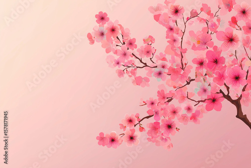 © WAQPRIME, Naklejka premium シンプルで美しい桜の花のイラスト(ピンクの背景付き)