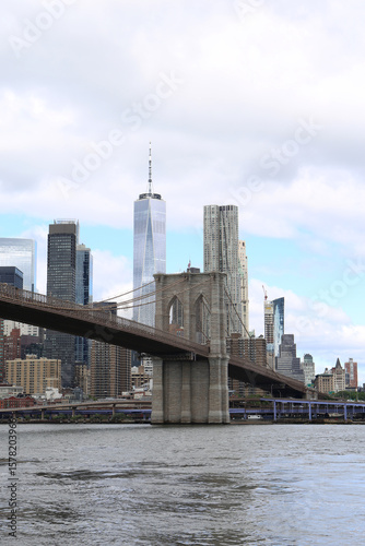 Obraz premium ブルックリン橋とワンワールドトレードセンター ニューヨークの街並み