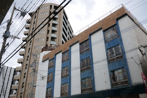 Fototapeta premium 電線と建物の織りなす街の風景