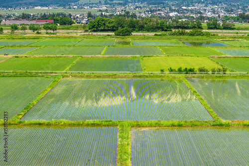 © oben901, Obraz premium 春の信州 水田に映る北アルプスの山並み