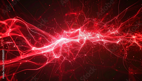 © LuckyStride, Obraz premium 赤いエネルギーの波動が交錯する抽象アート
