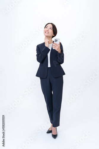 Fototapeta premium 携帯を見て考えるスーツを着た女性