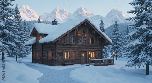 © A Beo, Fototapeta premium 雪山と静寂のログハウス