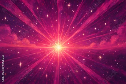 © CozyPalette, Fototapeta premium 추상 별빛 방사형 효과, 생동감 넘치고 환상적인 보랏빛 우주 느낌, 빛나는 별과 마법 질감 디자인