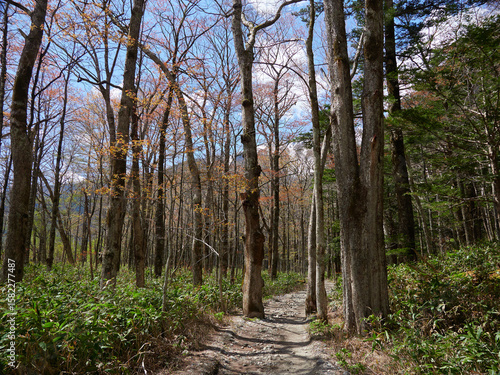 Fototapeta premium 初夏の観光名所上高地の森の整備された散策道の風景
