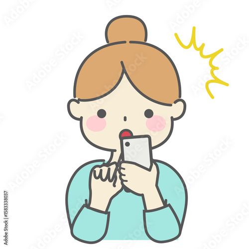 Obraz premium スマートフォンを操作して驚く女性