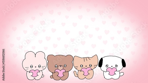 © titi.drawing, Obraz premium 하트를 들고 있는 동물 캐릭터 유튜브 썸네일 배경