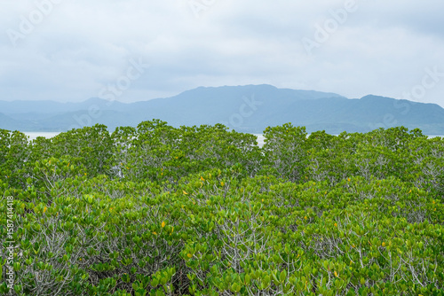Obraz premium 小浜島の西側に広がるマングローブ林