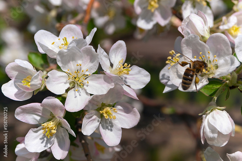 Obraz premium Пчела собирает пыльцу на цветке яблони