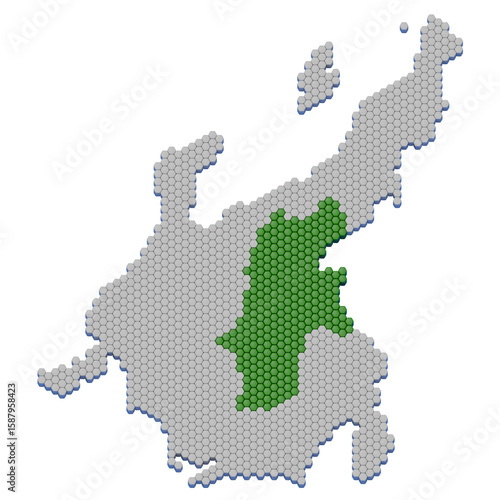 © ゆかた, Obraz premium ハニカム構造状の長野県の地図