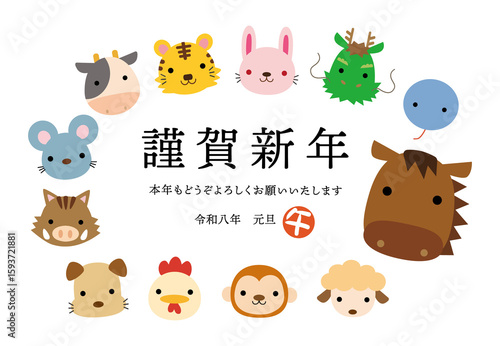 Obraz premium 2026年午年の干支キャラクター年賀状01