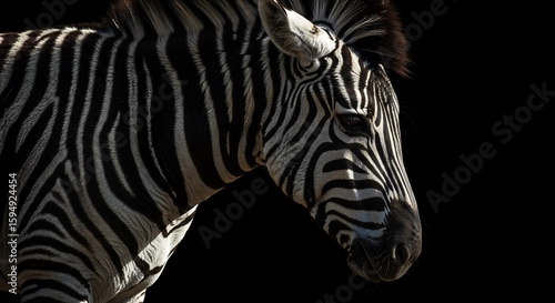 Naklejka premium 黒背景際立つシマウマ 力強い黒白コントラスト