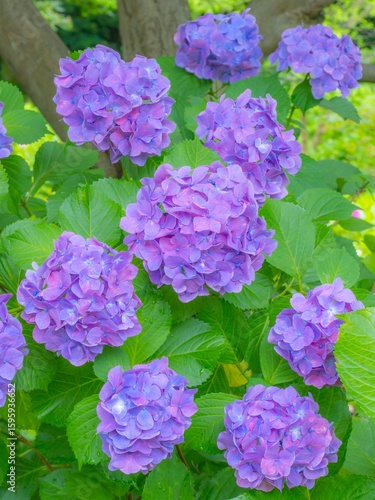 © STOCK THE WORLD, Obraz premium 梅雨から初夏の公園や花壇を彩るアジサイのある風景。雨上がりの爽やかな様子。