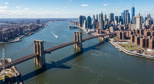 Obraz premium 輝くマンハッタンとブルックリン橋 爽快な高画質空撮