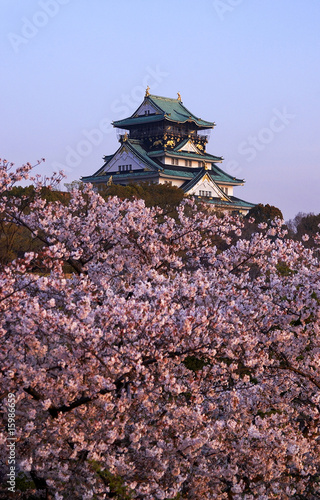 Fototapeta premium 桜と朝の大阪城