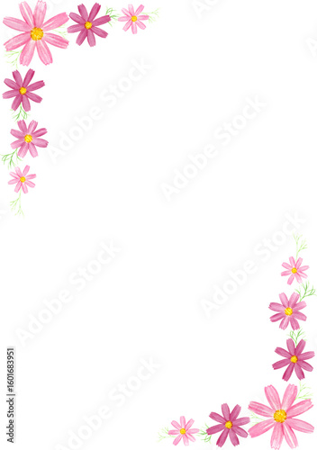 Fototapeta premium 水彩で描いたコスモスのフレーム 縦デザイン