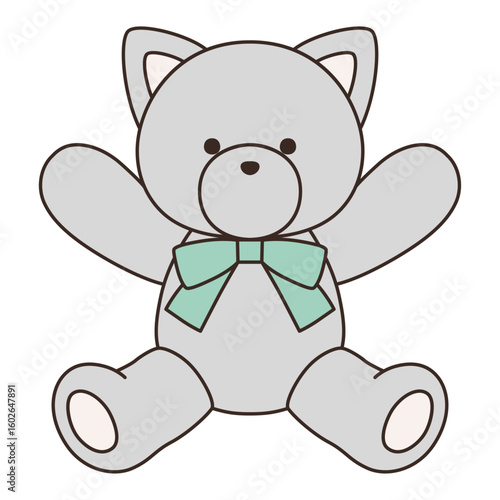 © chie, Obraz premium リボンをつけたかわいい猫のぬいぐるみのベクターイラスト。ねこ、アイコン