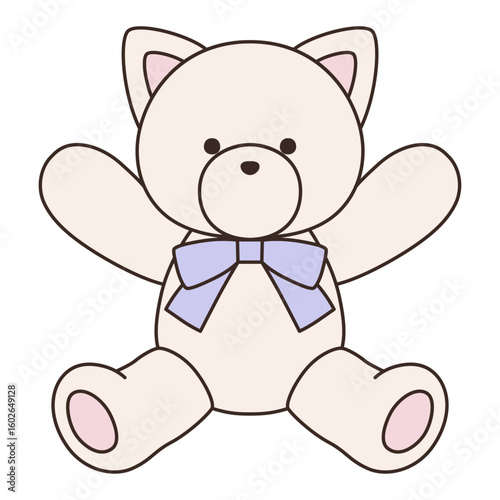 © chie, Obraz premium リボンをつけたかわいい猫のぬいぐるみのベクターイラスト。ねこ、アイコン