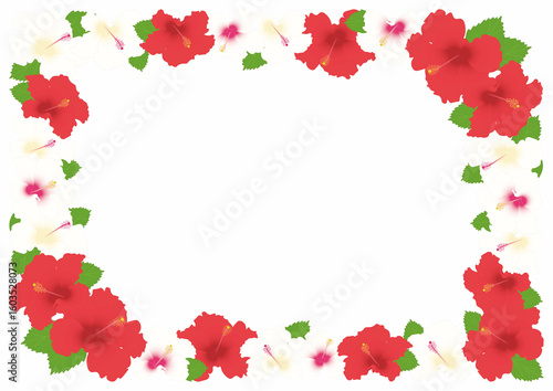 Fototapeta premium ハイビスカス赤白フレーム