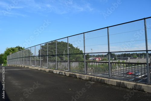 © noranoramona, Obraz premium 遊歩道の金網フェンス 高速道路への物投げ込み防止用