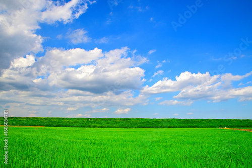 © katsuhiko kato, Obraz premium 米の水田と青空