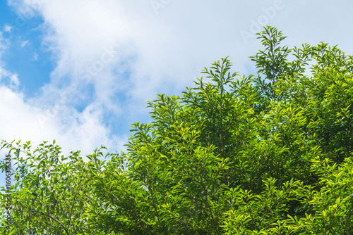 Obraz premium 夏の空 夏山から見る青空と雲と山の木々71