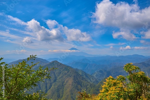 © Q2PHOTOAS, Fototapeta premium 秋の神奈川県松田町(秦野市,山北町)の鍋割山(なべわりやま)山頂から西側の富士山方面を見る